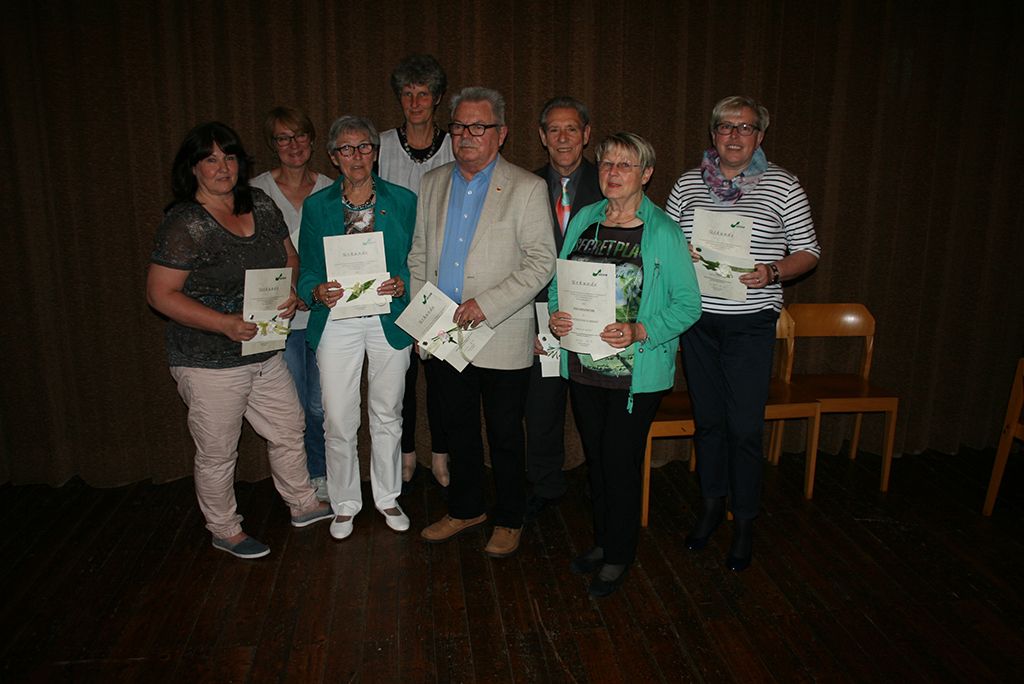 Zu den anwesenden Jubilaren zählten Heike Rose, Helena Rose, Mechthild Göllner (je 10 Jahre), Gisela Lattrich (25 Jahre), Josef Evers und Bernhard Westermann (10 Jahre) sowie Helmut Dierkes (25 Jahre).